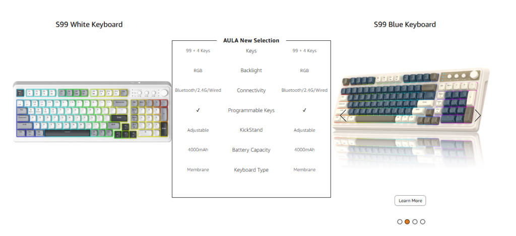 The AULA F99 feels like a $200 custom keyboard, but costs a fraction of the price. The build quality is heavy and solid. If you want that “ASMR” typing sound and a board that looks great on a desk, this is the one to buy.